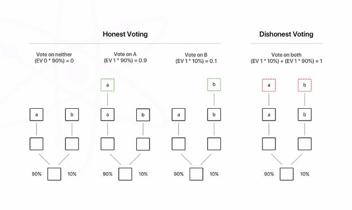 验证者是被激励着集合在权威链上的,因为如果他们持续在不同的链上进行投票将会受到惩罚。slasher 2.0的形成让验证者不仅仅会为双重投票而受罚也要为在不正确的链上进行投票而受到惩罚。不过这也造成了一个“泄气”的窘境,因为验证者担心如果出现一个分杈而自己不确定到底哪个才是权威的,然后投错票之后被消减所以选择退出投票。