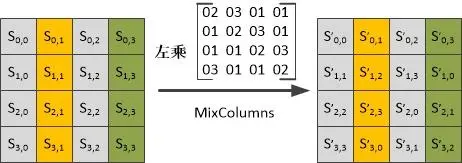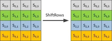 行移位是一个4x4的矩阵内部字节之间的置换,用于提供算法的扩散性。