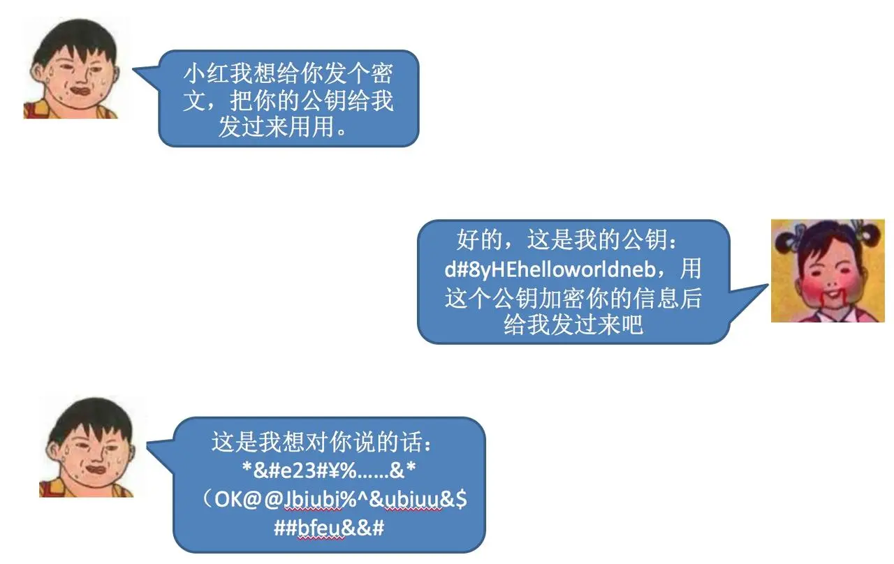 有了公钥、私钥之后,小明在QQ群里与小红说: