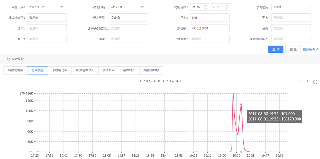 收到成功率异常告警后,在多维监控系统上通过画像下钻发现是空间点播业务的iphone客户端成功率下降,返回码为-310110004。如下图: