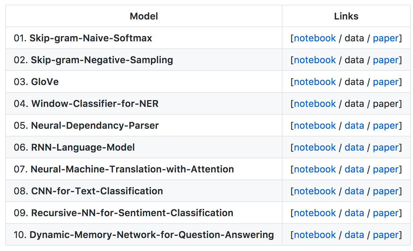 该 Github 项目是斯坦福大学 cs-224n 课程中各种深度 NLP 模型的 PyTorch 实现。