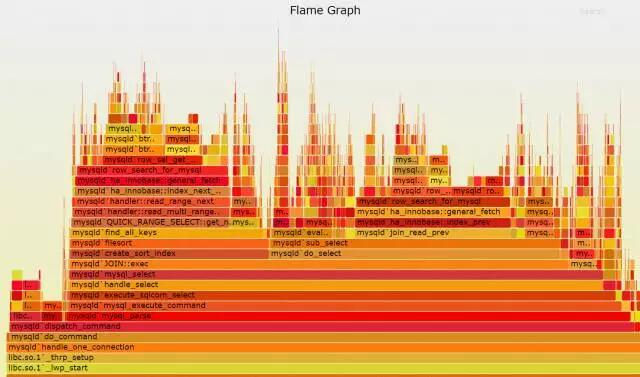 a()的2/3的时间花在b()上面,而b()的1/3的时间花在c()上面。很多个这样的a->b->c的火苗堆在一起,就构成了火焰图。