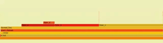上述火焰图显示出了a.out中,thread_func()、func_a()、func_b()、fun_c()和func_d()的时间分布。