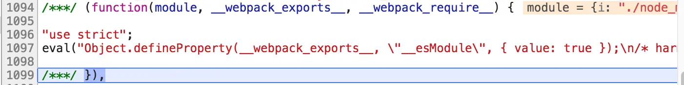 编译后的 app.js 里,是 eval 执行了引入整个编译 changelog.md 的代码,非常长。而在 eval 中打头的就看到我们熟悉的老朋友__esModule