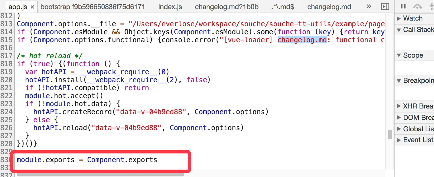 我在 webpack3 编译后的 app.js 搜索 changelog.md,发现了一个东西