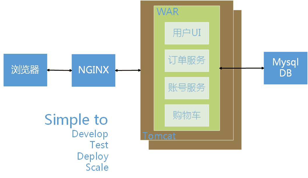 业务简单,团队组织很小的时候,我们常常把功能都集中于一个应用中,统一部署,统一测试,玩的不易乐乎。但随着业务迅速发展,组织成员日益增多。我们再将所有的功能集中到一个TOMCAT中去,每当更新一个功能模块的时候,势必要更新所有的程序。搞不好,还要牵一发动全身。实在难以维护。