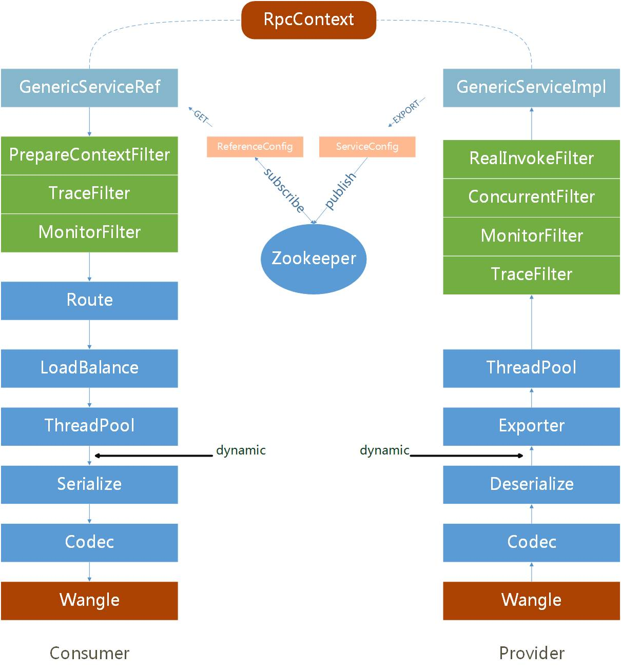 普通的RPC调用,我要拿到服务端提供的class或者jar包。但这样实在太重,更不好维护。不过,成熟的RPC框架都支持泛化调用,我们的网关就是基于这种泛化调用来实现的。服务端开放出来他们的API文档,我们拿到接口、参数、参数类型通过泛化调用到服务端程序。public Object $invoke(String method, String[] parameterTypes, Object[] args);