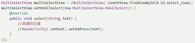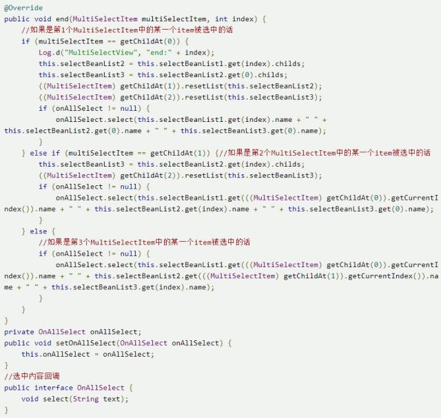 剩下还有MultiSelectView中被选中时的数据回调了,这里我就直接贴代码了: