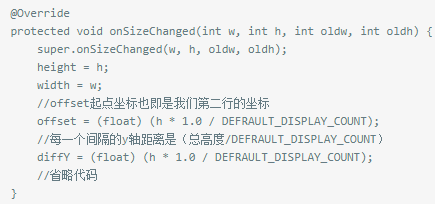 上面的绘制代码中,有两个变量offset、diffY,offset是当前view滑动到的位置,也即是我们第一个item的起点坐标,diffY是每一行需要的高度,可以看下他们的初始化的值。