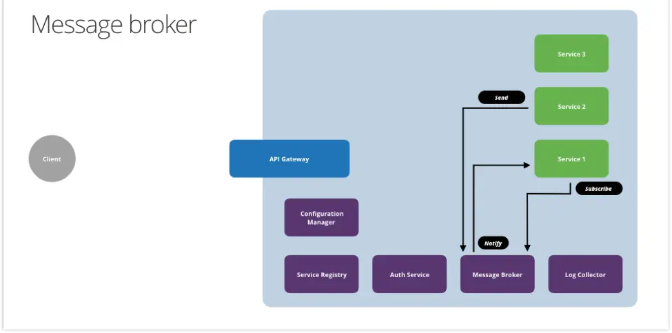 这就意味着我们需要再引入一个中心化的公共服务:消息中介(Message Broker)。当某个事件发生的时候(比如用户激活成功、订单创建成功),服务可以朝消息队列发一条消息。而其他服务可以订阅这些消息,并针对这些消息做出反应。
