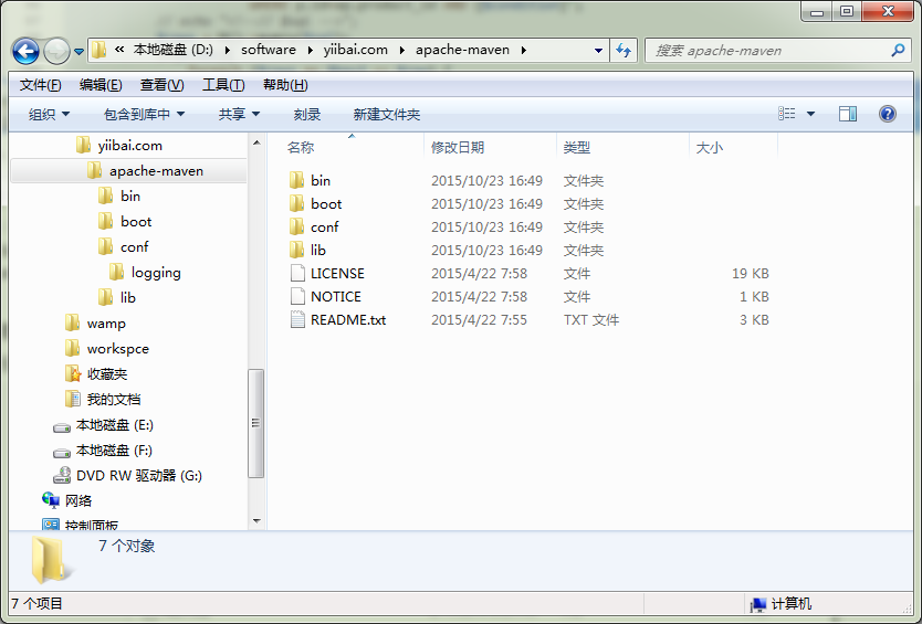 假设你解压缩到文件夹 – D:\software\yiibai.com\apache-maven