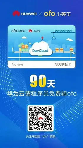了解华为软件开发云 ,可扫一扫下图,关注回复“ofo”还可领取小黄车90天月卡(30+30+30)+定制超大竞技游戏鼠标垫+华为小天鹅蓝牙音箱!!
