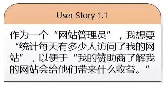 用户故事主要彰显的是: 谁做了什么事, 带来什么商业价值。