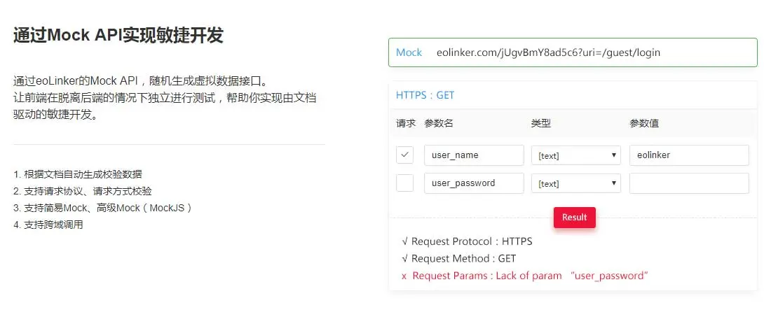 6、API Mock 测试,提供最强的 Mock 功能,支持 MockJS,支持自动刷新返回结果以及多种返回的结果。同时还支持对 API 进行请求校验,当参数或值不符合预设的模板时能够及时找出问题所在。