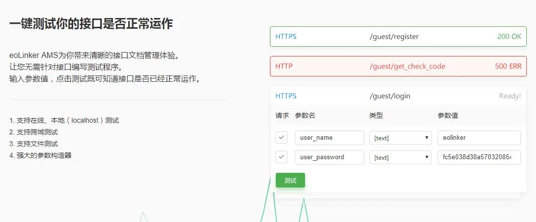 3、代码自动生成文档,通过读取代码中的 EOML ( eoLinker 标注语言)注解,eoLinker 可以自动生成 API 文档,省去了重复录入的麻烦,无缝连接开发与管理工作。