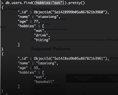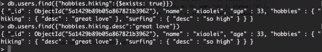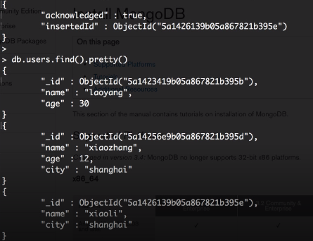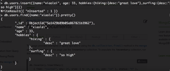 创建成功返回 WriteResult({ "nInserted" : 1 })