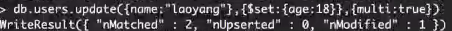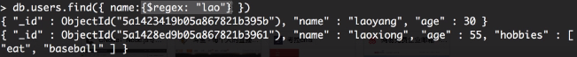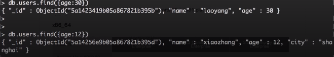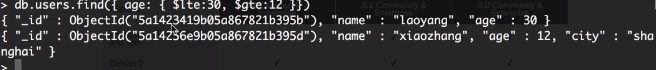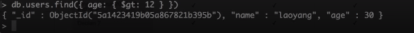 - age后面的{},表示写条件,年龄比12岁大的 $gt , $gte大于等于 $lte小于等于