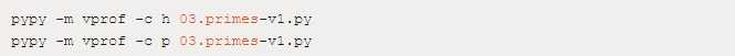 在 PyPy 上,要显示代码热图(下面的第一行调用)和代码分析(下面的第二行调用):