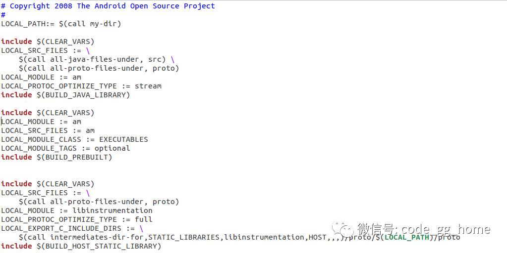 讲完了 dumpsys ,这节我们看下 am 命令,这个不同于 dumpsys的可执行文件, am 是个脚本文件。具体来看,先从android.mk来阅读下。很多时候,我不做太多强调,重复的去写一些流程,一些跟踪逻辑,这个是要掌握的关键,比如这里的android.mk