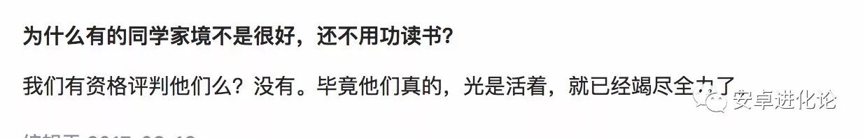 知乎上有个问题:“为什么有的同学家境不是很好,还不用功读书?”答案很多,我印象比较深刻的一个: