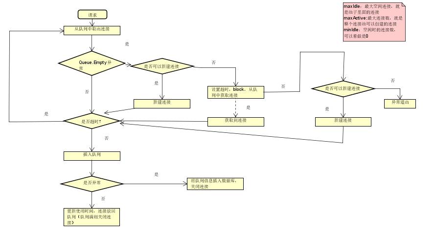 说的通俗点,可以把连接池理解为一个一个的管道,在管道空闲时,便可以取出使用;同时,也可以铺设新的管道(当然不能超过最大连接数的限制)。使用完之后,管道就变为空闲了。