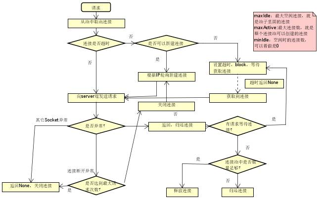Thrift连接池的设计同数据库连接池类似,流程图如下: