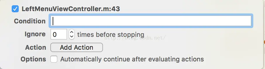 Ignore:忽略次数。它指定了在断点生效,应用暂停之前,代码忽略断点的次数。你如果希望应用运行一段时间后断点才生效,那么就可以使用这个选项。比如说在调试某一循环体的时候。