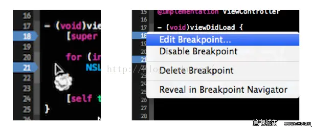 断点的操作非常简单,下面通过几张图来介绍一下如何添加、删除、编辑以及使用断点。设置断点也可以通过快捷键(command+"\")在需要设置断点的代码处