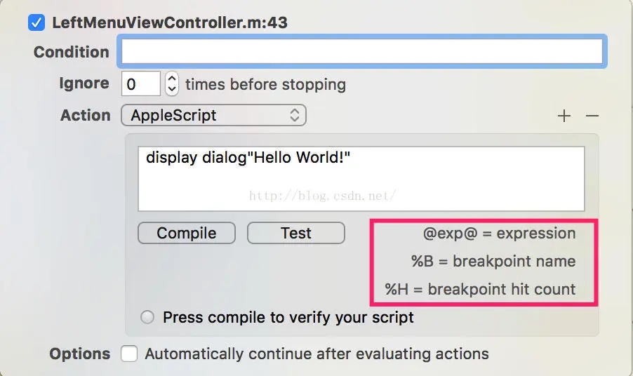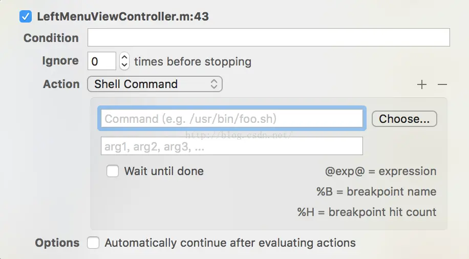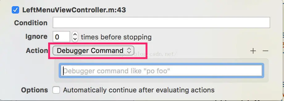默认的选项,可以让断点执行LLDB调试命令。