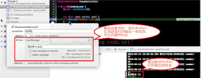 这个断点的作用和异常断点类似,只不过这个断点只有在openGL ES错误发生的时候才会触发。6、NSLog输出