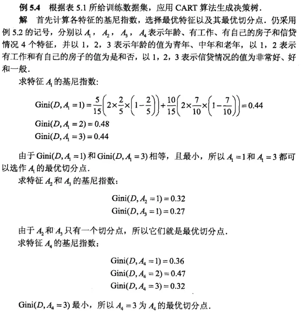 算法停止与节点样本个数小于阈值,或者是基尼指数小于阈值(样本基本属于同一类),或者没有更多特征。 CART分类树生成算法比较简单。就是将分配原则设定成了基尼指数。当然,我们还是最主要关注基尼指数的计算过程。我介绍个例子来辅助理解计算过程。