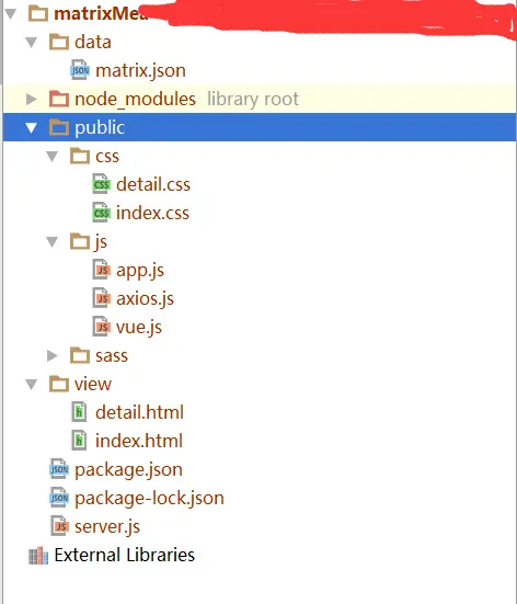 ps:public文件夹必须在项目的根路径,目前发现。应该可以自定为src下,还没有测试。否则css,js无法生效。
