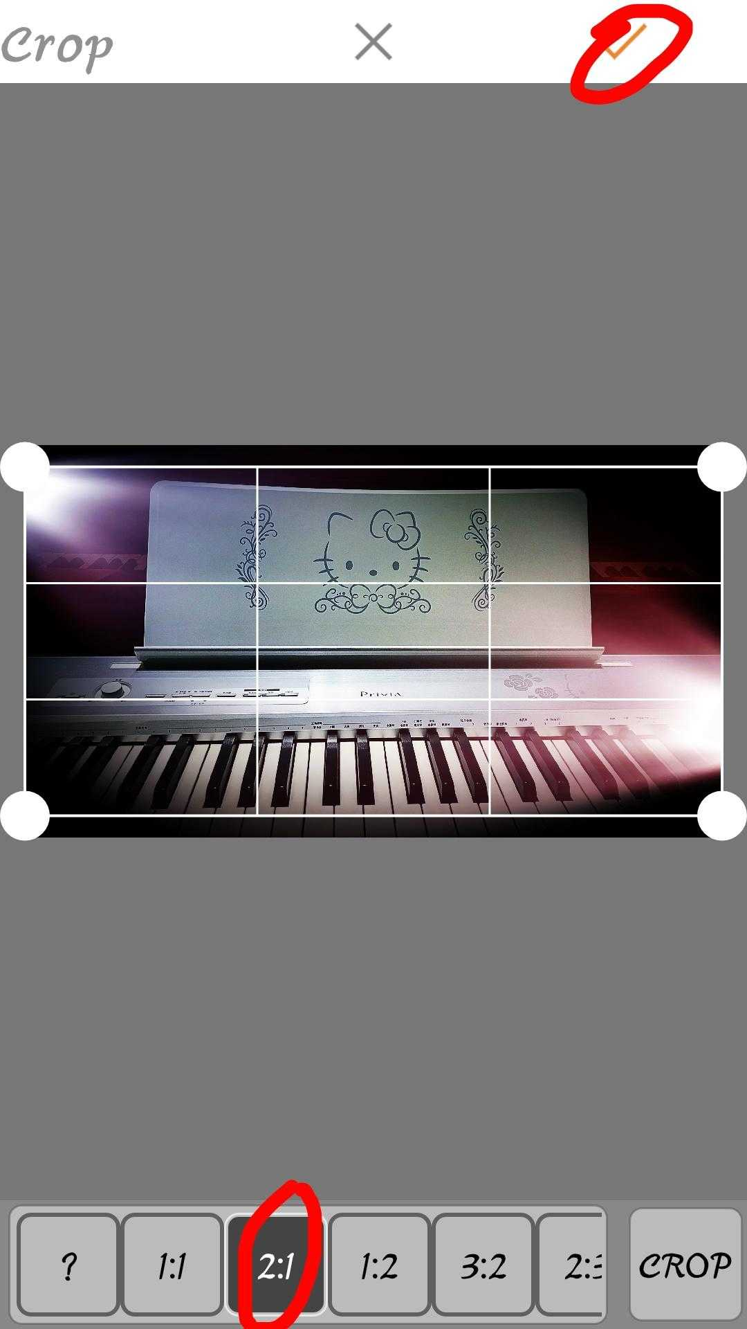 选择裁剪比例,选择你想要表现的部分。建议选择线条多的元素,这里默认选择2:1,然后点击对勾下一步继续编辑,