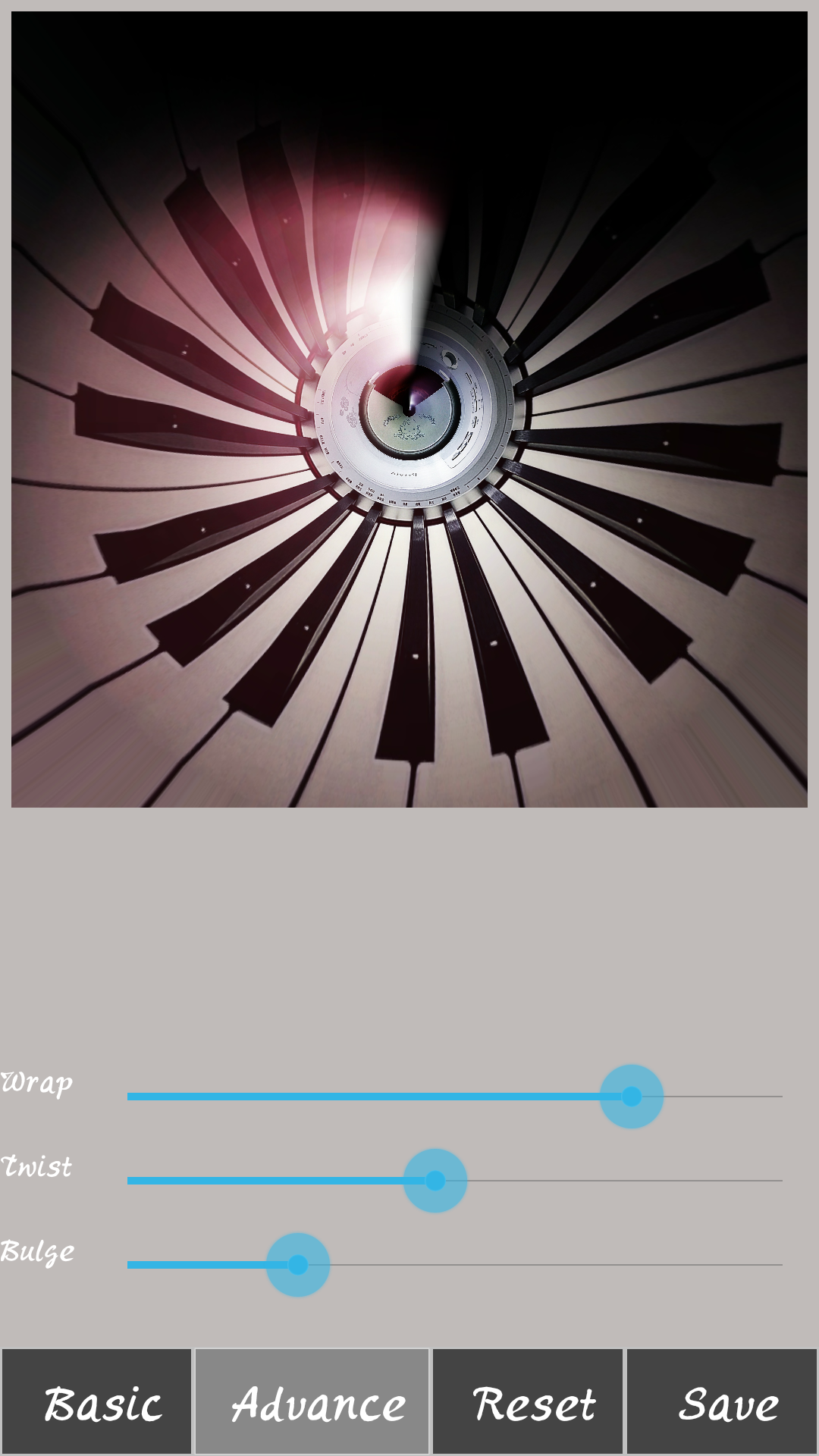 下面有三种不同的设置,自己可以根据需要依次打开尝试,选择适合自己的风格,这里选择第三种风格Advance进行设置,将hello kitty这款电子琴照的琴键片变成花瓣状,最后点击save保存。