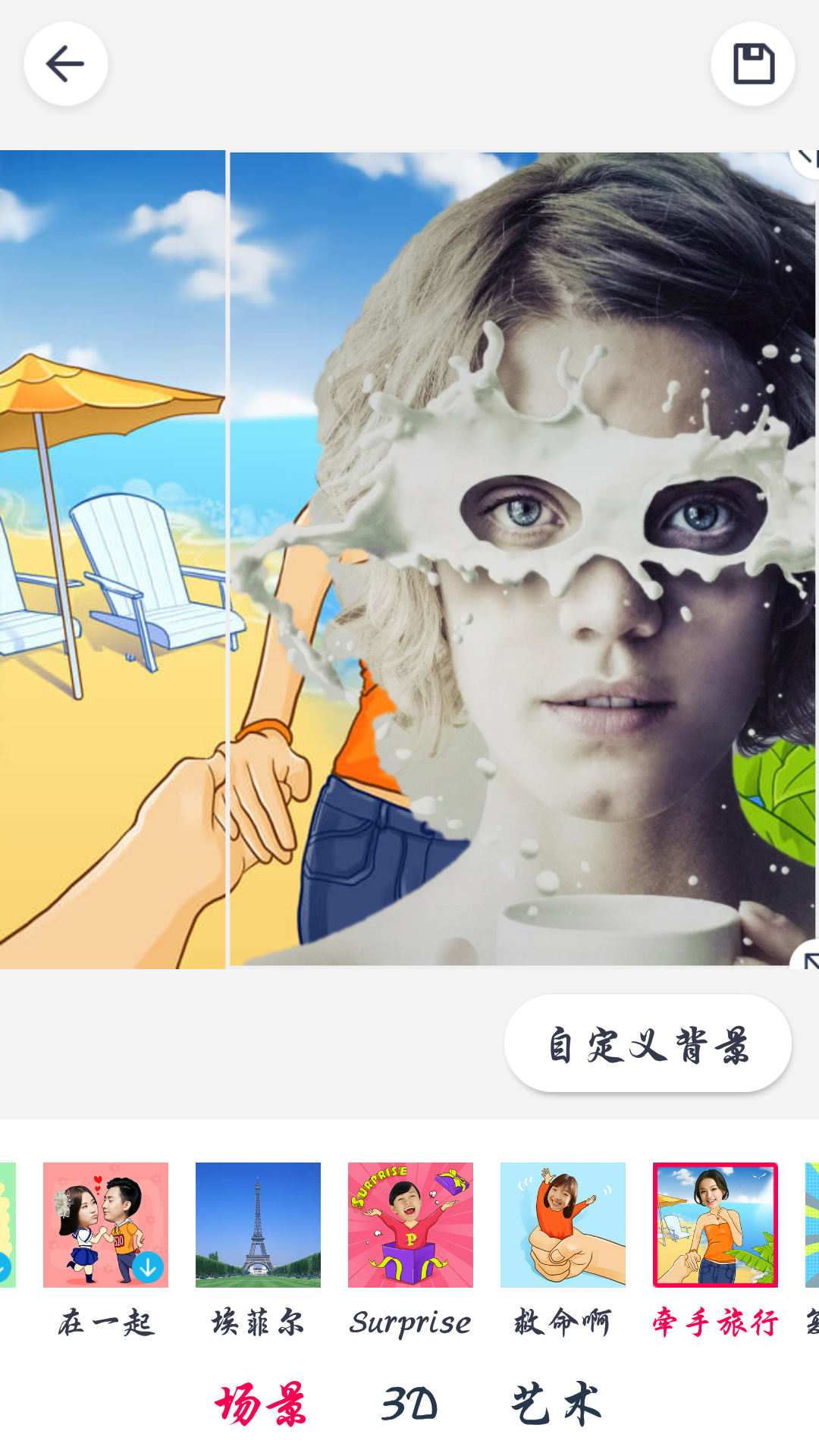 这里选择的是3D场景里的闪亮登场,当然该场景不止有场景模版,还可以自定义背景,不满足于官方模板可以选择自己相册里的图片作为背景都是不错的。