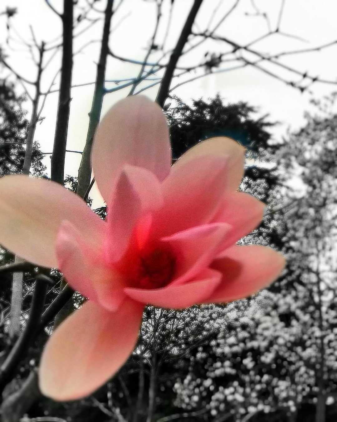 这张也是利用蒙版功能将照片背景调成了黑白色彩,只凸显前景的这一朵花的孤独惊艳之美。