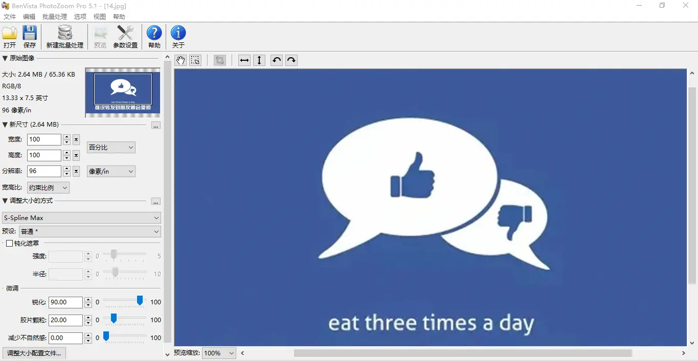这是一个非常好用的图片放大工具,和其他图片放大工具不同,它是利用插值算法分析相邻像素点(其实原理三顿也不懂),从而可以实现图片的无损放大。
