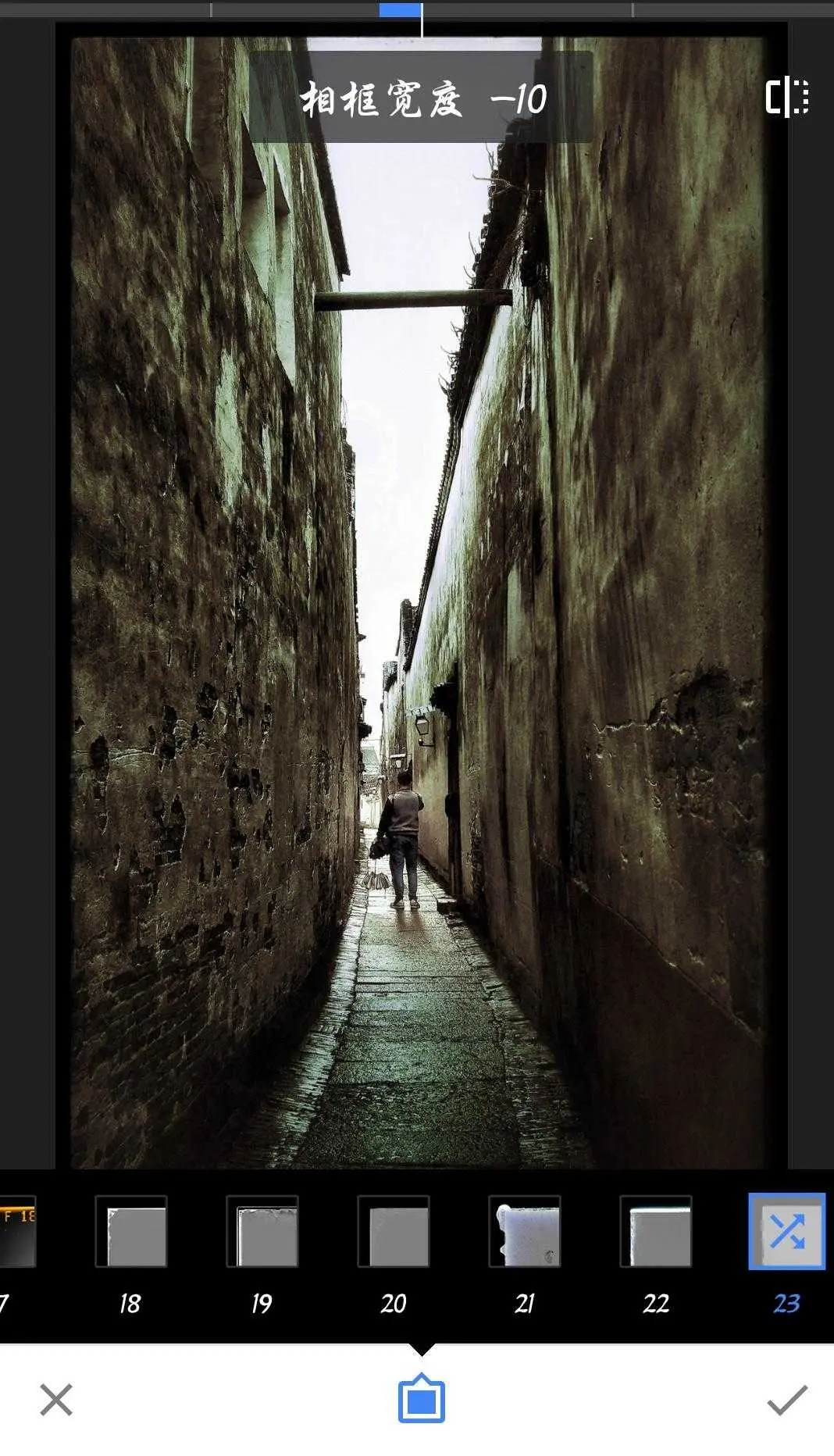 注意:Snapseed里有23种相框,且在不断更新,而且所有相框都特别适合复古怀旧风格照片风格,对于颜色浓烈的照片千万不要用。