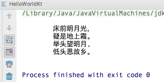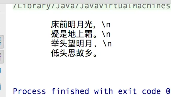 还是 李白的《静夜思》,我们直接使用双引号加换行的方式创建一个字符串,如下:
