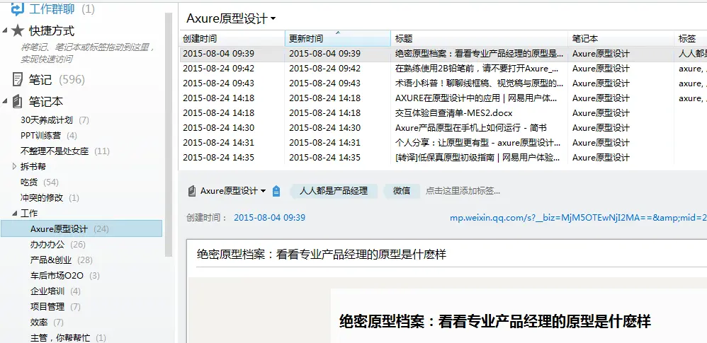 第二个位置是网络笔记,通过印象笔记我把随时随地采集的信息(照片,想法)等通过手机保存,同时这些资料会同步到我的PC端去。