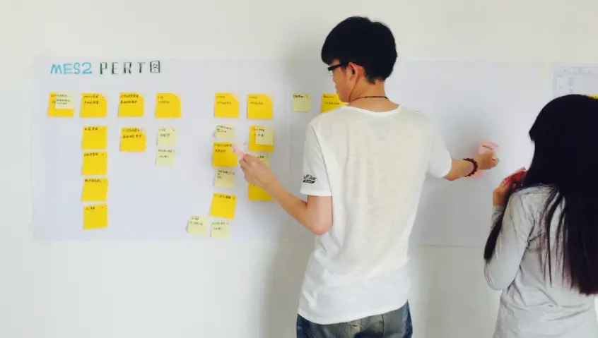 我也经常把学到的工作技能用到工作中,比如有一天早上看《视觉化你的会议》这本书,发现确实如果大家一起用画笔,用贴便签讨论的方式,效果应该会不错。于是下午的会议我们就尝试了一把: