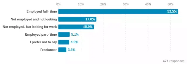 在美国,机器学习从业者年龄的中位数是32岁,以20-30岁年龄段的人数最多。但令人意外的是,我们在图表中看到一位年满100岁的大牛,还有几位年龄接近0岁的小朋友。我们尚不清楚Kaggle这里数据清洗的细节,不过这几位大牛果真存在的话,务请联系AI科技大本营,我们对您的存在非常感兴趣。