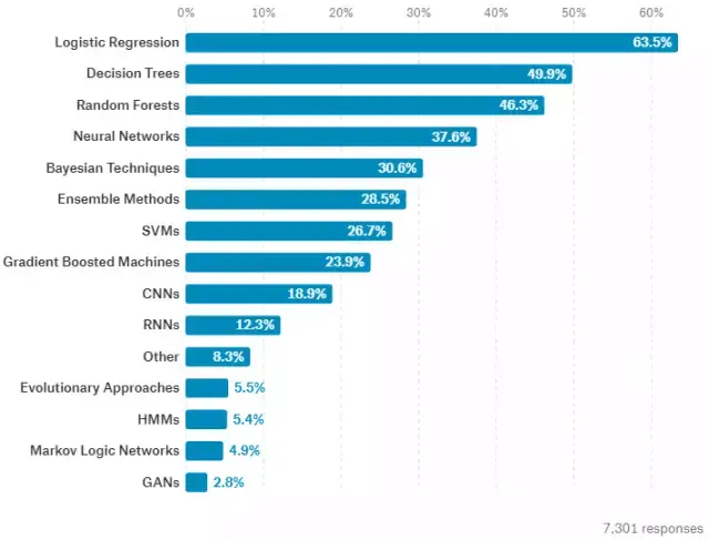 Logistic回归是除了军事和国安领域外,最常用的数据科学研究方法。在军事和国防安全领域,神经网络使用地更多。