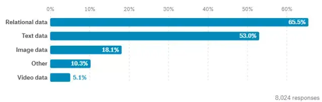 关系型数据市是最常用的数据类型。但在学术研究者和国防安全领域则更亲睐文本和图像。