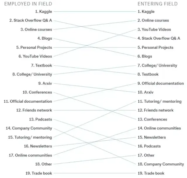 数据科学是个变化极快的领域,业内人员需要不断更新知识体系,才可以在业内保持一定地位,不被时代淘汰。Stack Overflow Q&A,Conferences,和Podcasts是已从业者经常使用的学习平台。发布新软件时,一定记住阅读官方使用指南,并推荐去YouTube观看使用视频。