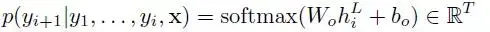 我们还在大小为 f 的嵌入和大小为 2d 的卷积输出之间的映射中添加了线性映射。最后,我们计算了 T 个可能的下一目标元素 yi+1 的分布: