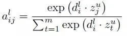 对于解码器层 L,状态i 的Attention alij和源元素 j 计算为解码器状态摘要 dli 和最后一个编码器卷积块 u 的每个输出 zu 之间的点积。