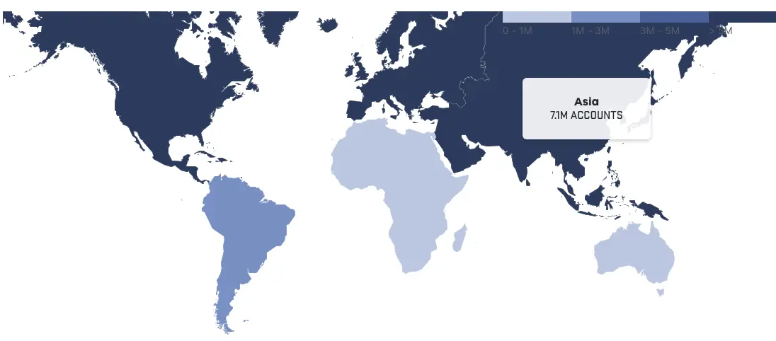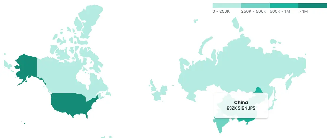 You’ve been collaborating from every corner of the earth. 24 million people use GitHub across 200 countries. This map approximates which continents use GitHub most.(你们已经在地球的每个角落一起协作。2400万开发者使用GitHub横跨了200个国家。这张地图近似的显示哪个大陆使用GitHub最多。)