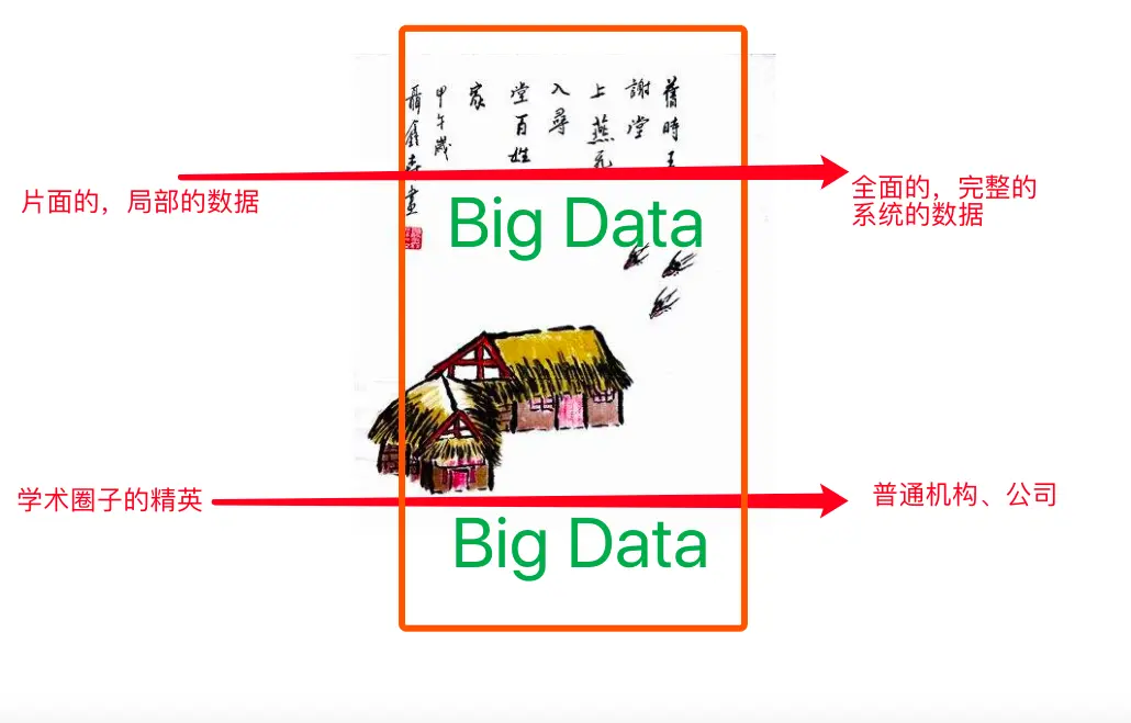 5、 人类历史长河中,人们主要依赖于抽样数据,局部数据,片面数据进行分析,甚至在无法获取数据的时候只能纯粹的依赖于经验,理论,假设和价值观等去发现探索未知的领域。而大数据时代的来临,给我们带来了第一次机会,让我们可以在很多的领域获得全面的,完整的,系统的数据,深入探索现实世界规律,获取过去不可能得到的更多知识和商机。大数据的出现,让数据分析这一手段走入寻常机构家,从前通过这一手段的都是少数的学术精英圈子或者是世界顶级公司,现在至少已经很多机构都可以使用数据分析进行改进了!最重要的是,人们可以从对于因果关系的追求中解脱出来,转而将注意力放在相关关系的发展与应用上(书中原话,我看不大懂,先写着吧!)