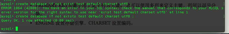 ENGINE 设置存储引擎,CHARSET 设置编码。